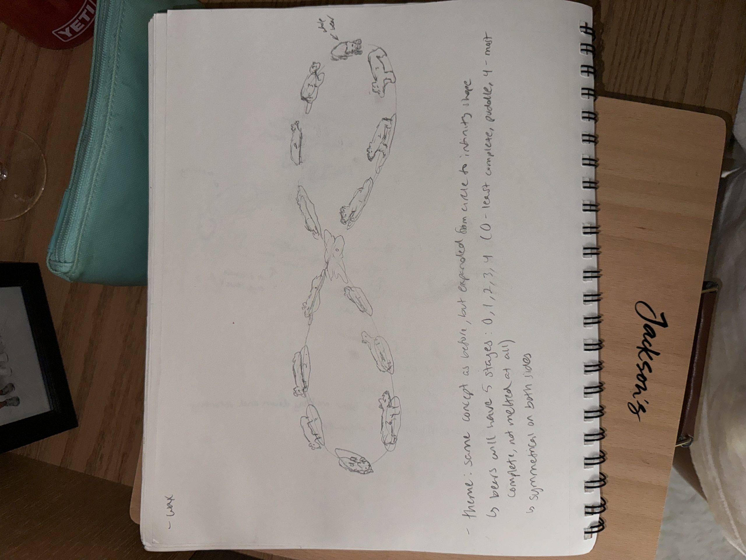In this project, I want to explore the popularity of the bear motif, particularly highlighting its regenerative symbolism. As aforementioned, the bear imagery has been appropriated into the teddy bear, which has been continuously re-envisioned, created, and sold by toy companies for years. To add to this cyclical theme, the bear has been associated with regeneration and rebirth due to its tendency to hibernate in winter. Therefore, I want to emphasize the rebirth quality that bears carry. The ideas that I want to avoid are depicting the bear as possessing brutal strength or having violent dispositions. I feel that this is quite cliche and difficult to portray since the expression of the 3D-printed bear is neutral.